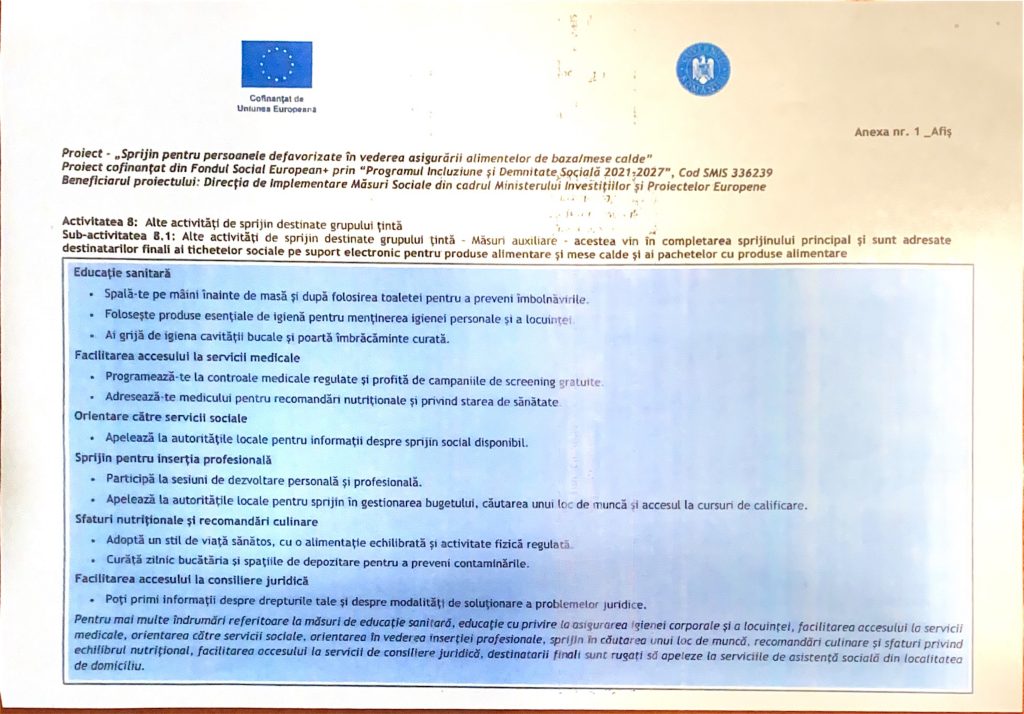 ANUNȚ PROIECT SPRIJIN PENTRU PERSOANELE DEFAVORIZATE ÎN VEDEREA ASIGURĂRII ALIMENTELOR DE BAZĂ
